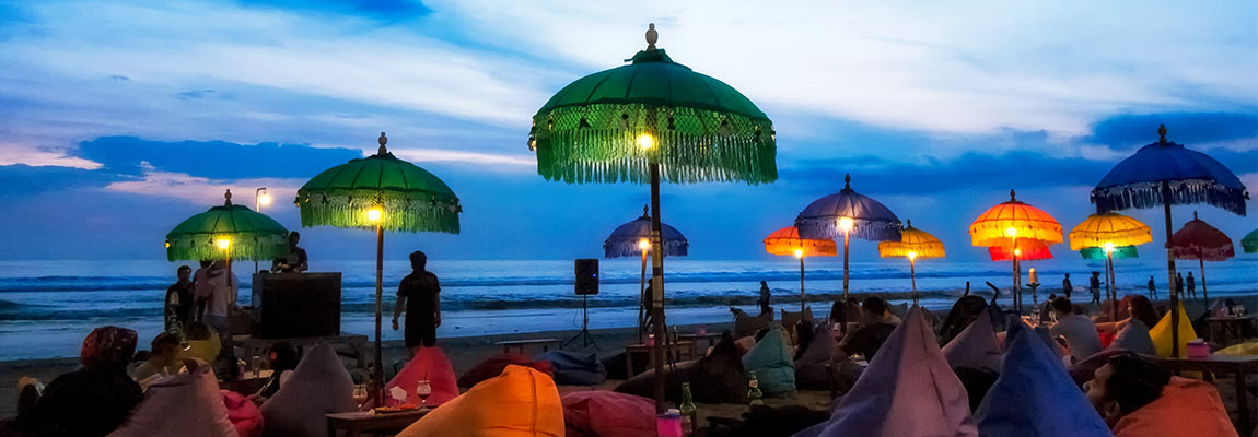 🍹 Nightlife sôi động: Kuta, Seminyak, Canggu – những bar bãi biển, club âm nhạc và sunset dinner đẳng cấp