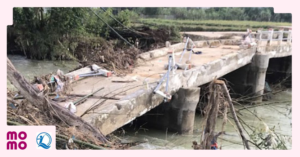 - Không chỉ trường học, hạ tầng đi lại của người dân cũng bị tàn phá nặng nề. Tại xã Thông Nông, cây cầu dân sinh duy nhất nối các thôn bản đã bị gãy đổ sau bão. Hiện người dân và trẻ em phải lội suối hoặc đi đường rừng hiểm trở để đến trường và sinh hoạt - tiềm ẩn rủi ro đặc biệt lớn trong mùa lũ.
