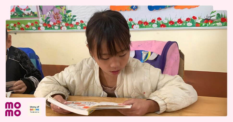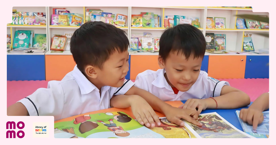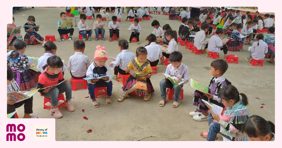 Các em nhỏ đọc sách vào giờ ra chơi