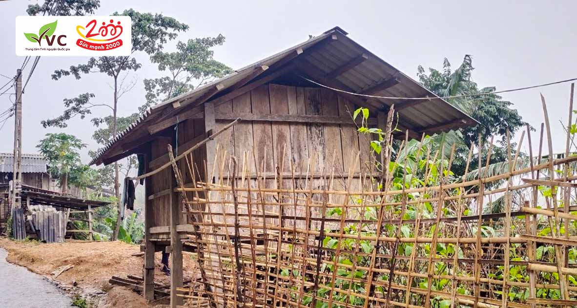 Em Hờ Thị Kia cùng mẹ sinh sống trong ngôi nhà gỗ đã hư hỏng nặng nề