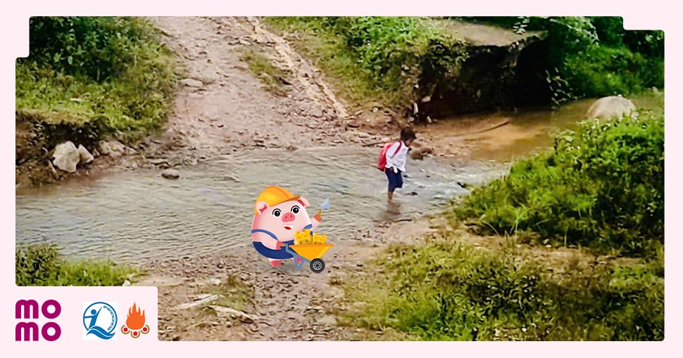 Quỹ Bảo trợ Trẻ em Việt Nam rất mong cộng đồng làm việc tốt Heo Đất MoMo cùng nhau quyên góp 2.812.500 Heo Vàng. Số Heo Vàng này sẽ được nhà tài trợ Nguyễn Thùy Anh và Anh Chị Nuôi Dự án Nuôi Em quy đổi thành 450.000.000 đồng tiền mặt để sớm xây dựng Cầu Bóc K Long dài 15m và rộng 3m. Một cây cầu nhỏ, nhưng mang lại con đường an toàn và tương lai bền vững cho cả thôn Ba Lòng.