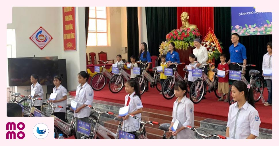 Nhằm tiếp thêm động lực cho các em học sinh nghèo vượt khó, CLB Tình nguyện viên Thủ đô - Cung Thanh niên Hà Nội và các đơn vị đồng hành kêu gọi sự chung tay của Cộng đồng Người dùng Siêu ứng dụng MoMo quyên góp 200.000.000 đồng để trao tặng 40 phần quà. Mỗi phần gồm học bổng và một chiếc xe đạp, dành cho các em học sinh có hoàn cảnh khó khăn nhưng đạt thành tích tốt trong học tập tại tỉnh Lào Cai. Những món quà thiết thực này không chỉ giúp các em đến trường an toàn hơn mỗi ngày, mà còn là sự ghi nhận cho những nỗ lực bền bỉ trong hành trình học tập đầy gian nan.