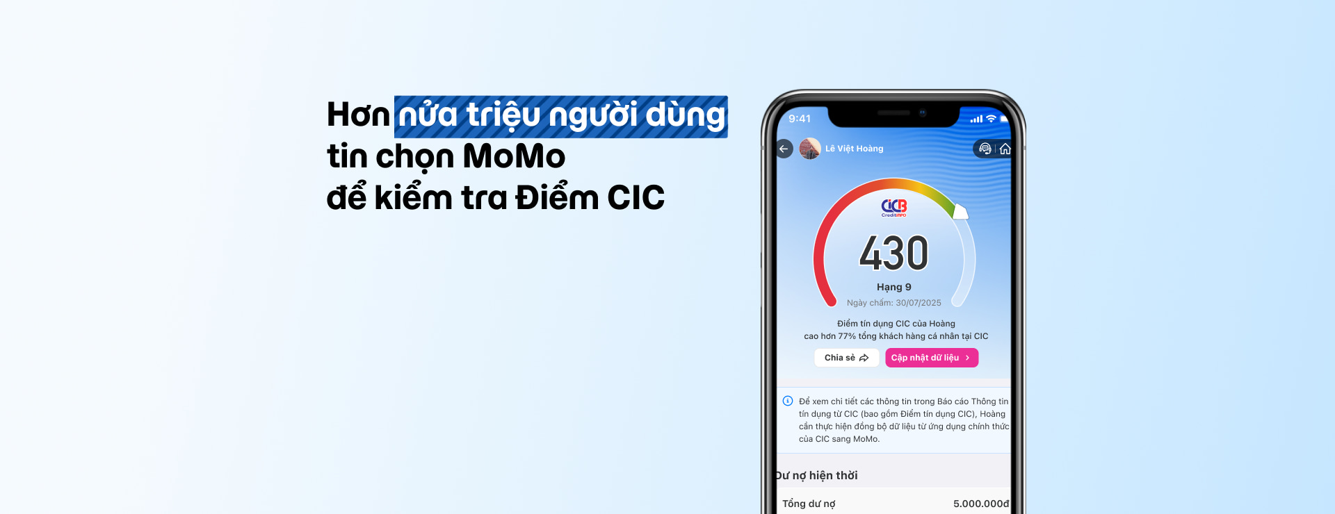 Tiện ích khi kiểm tra Điểm tín dụng CIC trên MoMo