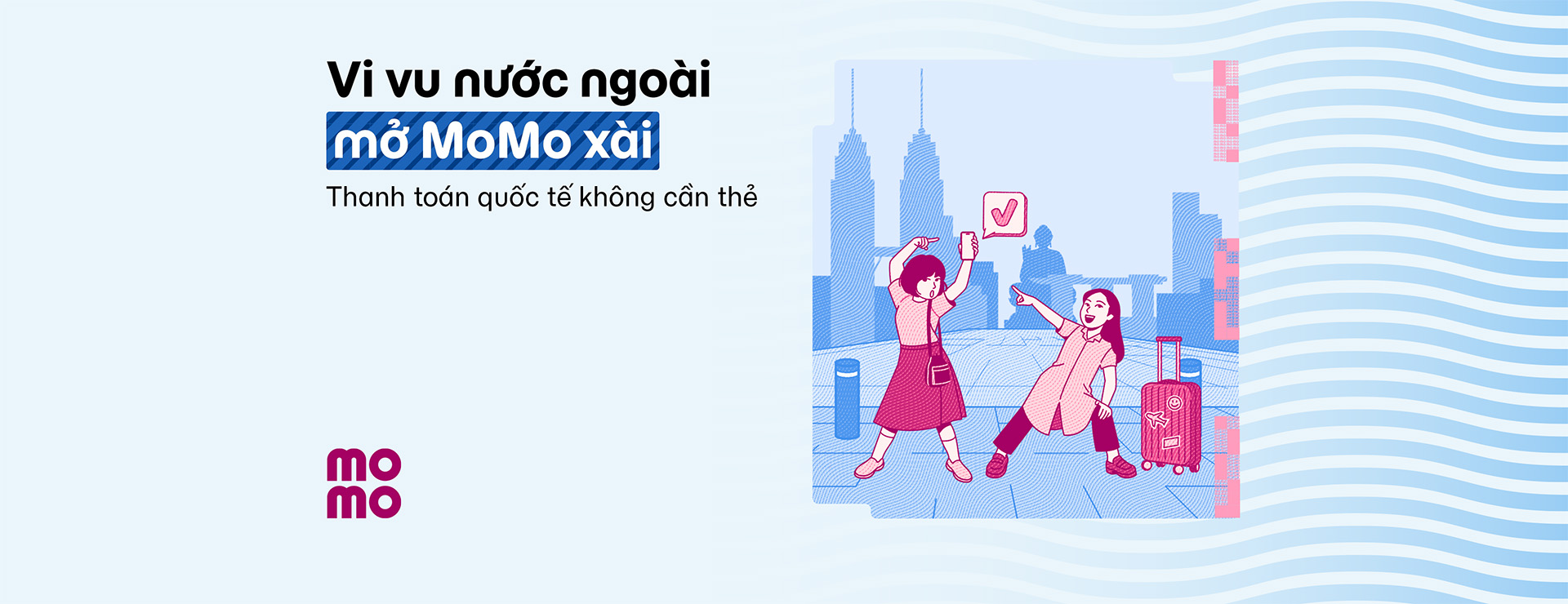 MoMo đã sẵn sàng thanh toán tại các quốc gia như Singapore, Malaysia, Hàn, Trung Quốc, Thái, Nhật ... chỉ với thao tác quét QR đơn giản. Danh sách quốc gia chấp nhận sẽ tiếp tục được mở rộng, để mỗi chuyến đi của bạn tiện lợi hơn.