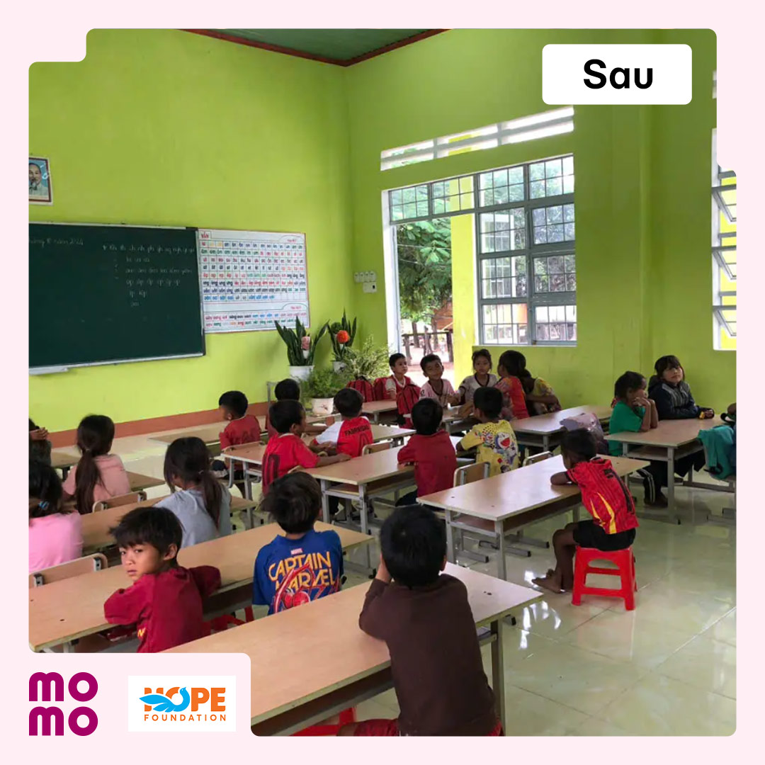 Với mong muốn chia sẻ những khó khăn vất vả của thầy trò làng Lơ Pơ, giúp các em có điều kiện học tập và sinh hoạt tốt hơn, tháng 08/2024 Quỹ Vọng đã kêu gọi sự chung tay của Cộng đồng người dùng Siêu ứng dụng MoMo cùng quyên góp thành công số tiền mặt là 120.000.000 đồng. Tổng kinh phí xây dựng của dự án là 600 triệu đồng, vì vậy dự án còn có 480 triệu đồng được các nhà tài trợ quy đổi từ chiến dịch quyên góp Heo Vàng. Số tiền này đã được sử dụng để xây tặng các em những phòng học cũng như phòng công vụ kiên cố và vững chắc hơn.