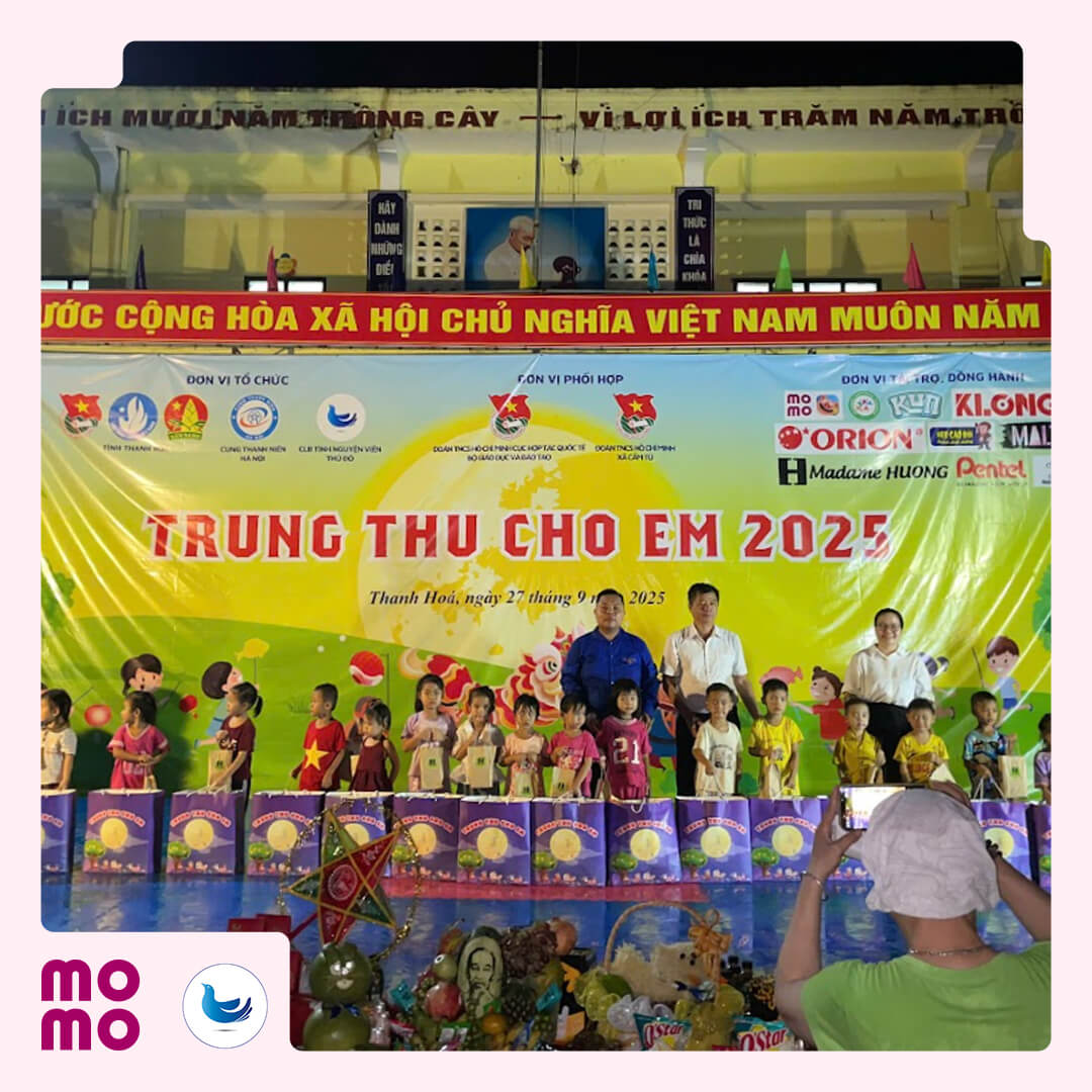 Tết Trung Thu mang theo bao nụ cười và ký ức tuổi thơ, và nhờ những tấm lòng nhân ái của cộng đồng MoMo, mùa trung thu vừa qua đã thực sự ấm áp hơn với nhiều em nhỏ tại Thanh Hóa. Chiến dịch “Gây quỹ trao 400 phần quà Tết Trung Thu cho các em tại Thanh Hóa” đã nhận được 53.521 lượt quyên góp với tổng số tiền 103.443.705 đồng, và mọi nguồn lực đã được chuyển hóa thành những phần quà trọn vẹn nghĩa tình.
