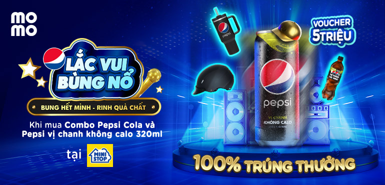 - Cách 2: Mua Combo lon Pepsi Cola 320ml và lon Pepsi vị chanh không calo 320ml và thanh toán bằng MoMo tại các cửa hàng Ministop trên toàn quốc.