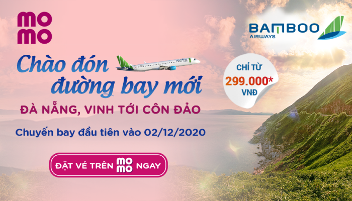 Các đường bay mới của Bamboo Airways được mở bán từ 29/10/2020 tại MoMo, với chuyến bay đầu tiên cất cánh từ 02/12/2020. Lịch trình các chuyến bay rất đa dạng, chỉ cần một chạm vàoMoMo là bạn có thể tìm thấy mọi thông tin và mua vé với mức giá cực tiết kiệm chỉ từ 299.000đ (*).
