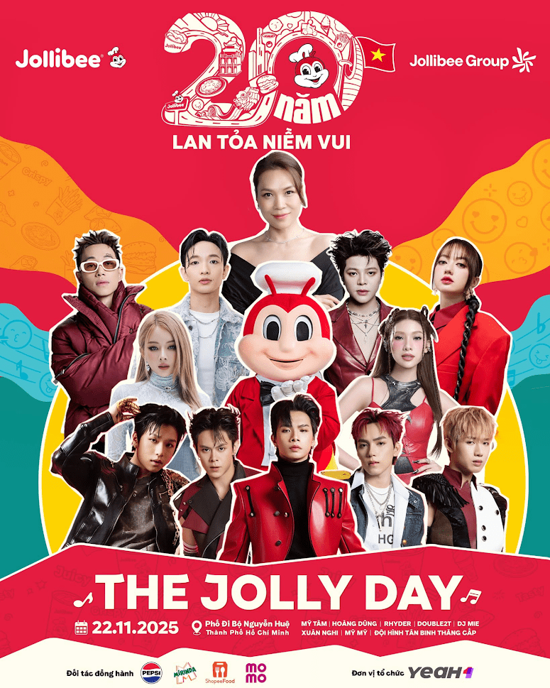 Sự kiện âm nhạc hoành tráng “The Jolly Day” do Jollibee Việt Nam tổ chức sẽ diễn ra vào ngày 22/11 tại phố đi bộ Nguyễn Huệ, TP. Hồ Chí Minh.