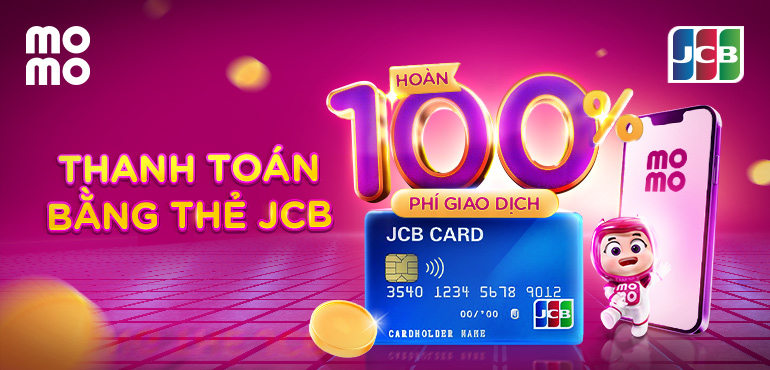🎁 Khách hàng khi sử dụng nguồn tiền từ Thẻ JCB để thực hiện thanh toán tại MoMo (áp dụng cho tất cả giá trị giao dịch thanh toán) sẽ được HOÀN 100% PHÍ GIAO DỊCH (Phí giao dịch bằng Thẻ quốc tế = 2% x [Số tiền chuyển] + 2.200Đ).