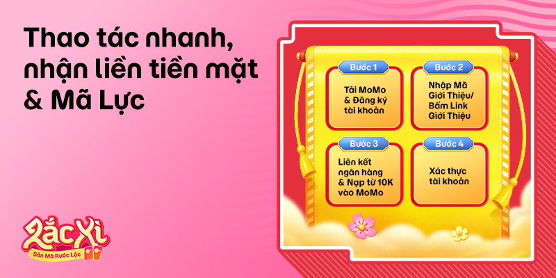 Đường đua Lắc Xì 2026: Săn Mã Rước Lộc đã chính thức lên sóng. Để mau về đích, bạn hãy nhanh tay thực hiện nhiệm vụ “Giới thiệu MoMo” để được tiếp sức với combo ưu đãi gồm: