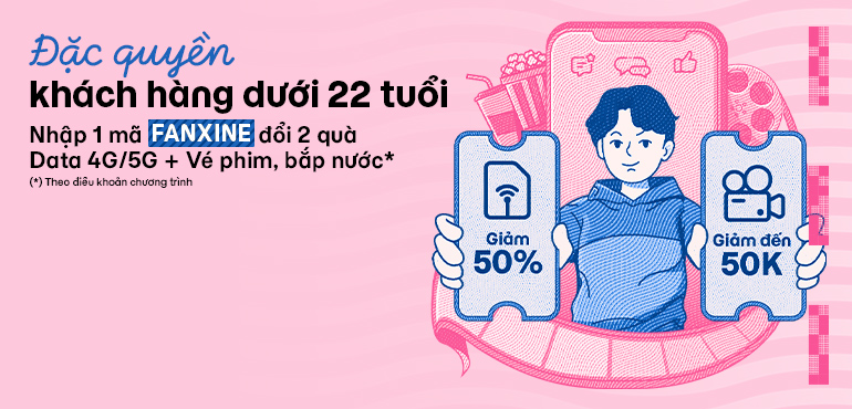 Nạp data 4G/5G trên MoMo nhập mã FANXINE tại bước thanh toán cuối cùng được giảm 50%.