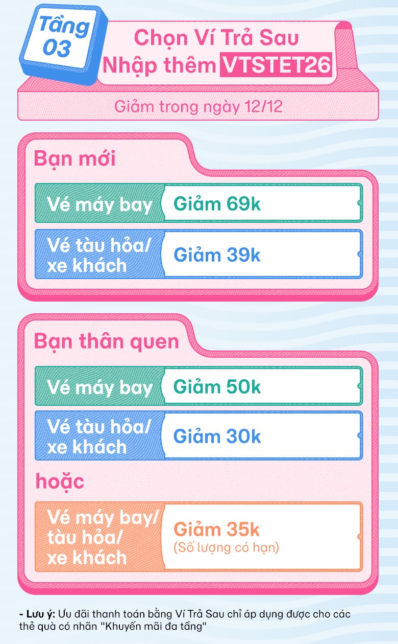 - Đặt vé linh hoạt với đa dạng phương thức thanh toán từ tài khoản MoMo, nguồn thanh toán từ các ngân hàng,... đặc biệt là Ví Trả Sau với thời hạn lên đến 45 ngày.