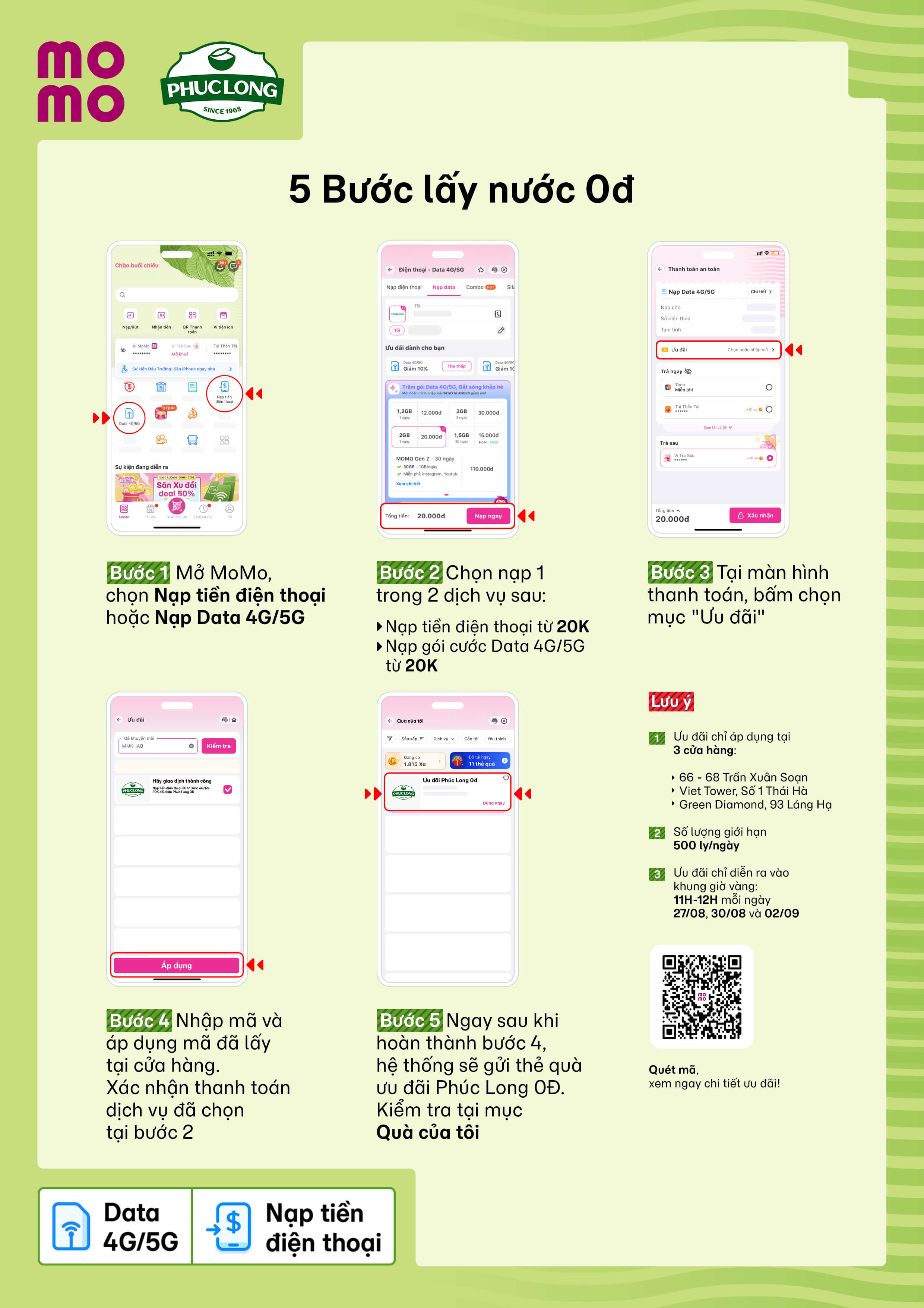 *Lưu ý: Thẻ quà Phúc Long 0Đ chỉ áp dụng cho 3 cửa hàng trên và trong khung giờ vàng 11H-12H mỗi ngày 27/08; 30/08 và 02/09.