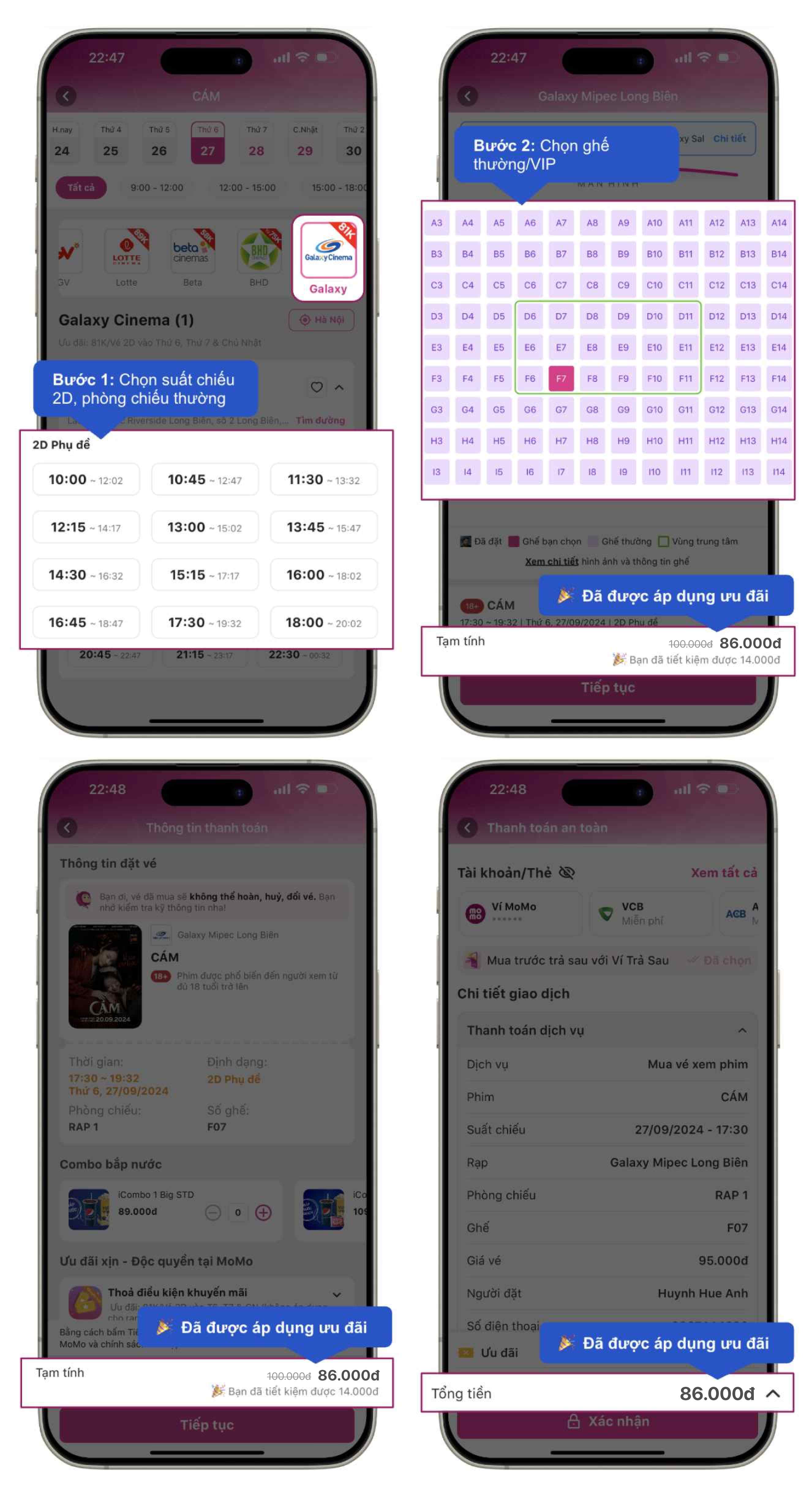 - Áp dụng cho người dùng đặt vé Galaxy Cinema trực tiếp trên MoMo.
