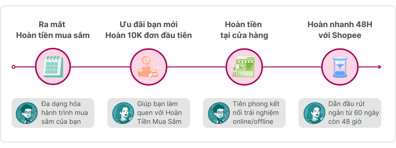 Hoàn nhanh Shopee 48H là thành quả từ những phản hồi thực tế của nhóm người dùng trải nghiệm sớm. Hành trình từ những ngày đầu đến cột mốc tiên phong này của MoMo đều được viết nên từ chính góp ý của bạn. Hy vọng những nỗ lực này sẽ giúp trải nghiệm mua sắm của bạn thêm trọn vẹn và tiết kiệm. Hãy cùng nhìn lại những điểm nhấn đáng nhớ của Hoàn Tiền Mua Sắm nhé!