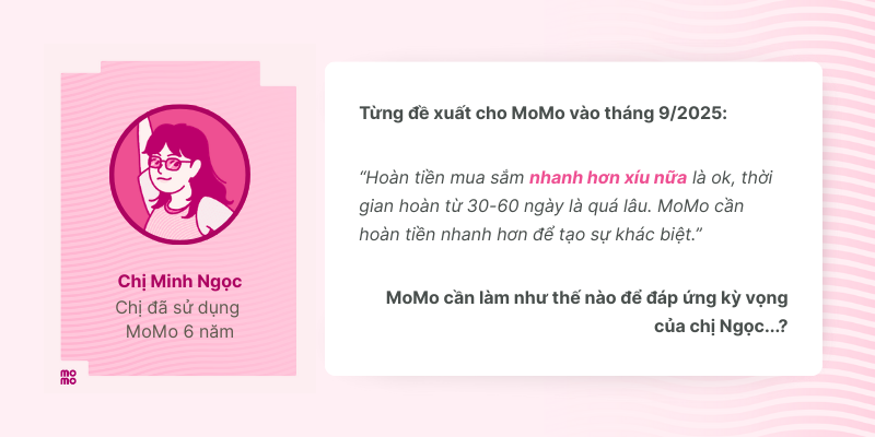 Trong thời buổi giá cả leo thang từng ngày, MoMo hiểu những nỗi trăn trở của người dùng là làm cách nào để có thể mua sắm tiết kiệm hơn mà vẫn đảm bảo trải nghiệm tiện lợi. Vì vậy, tính năng Hoàn tiền mua sắm đã được ra mắt. Nhưng chưa dừng lại ở đó, tất cả bắt đầu thay đổi từ lời “thúc giục” của chị Ngọc…