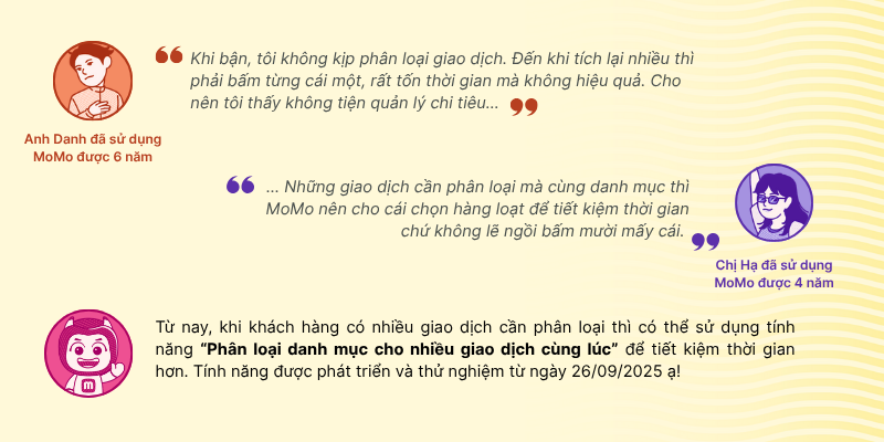 Mỗi tính năng mới của MoMo không chỉ đơn thuần là một cải tiến công nghệ, mà là sự lắng nghe chân thành từ những câu chuyện, những mong muốn thực tế của bạn. Từ việc thao tác nhanh hơn, quản lý chi tiêu hiệu quả hơn và có được trải nghiệm thanh toán an toàn, mượt mà hơn trên MoMo mỗi ngày.
