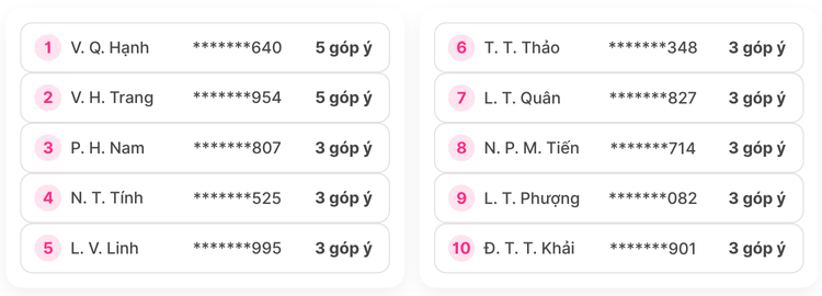 Những thay đổi bắt nguồn từ góp ý của bạn