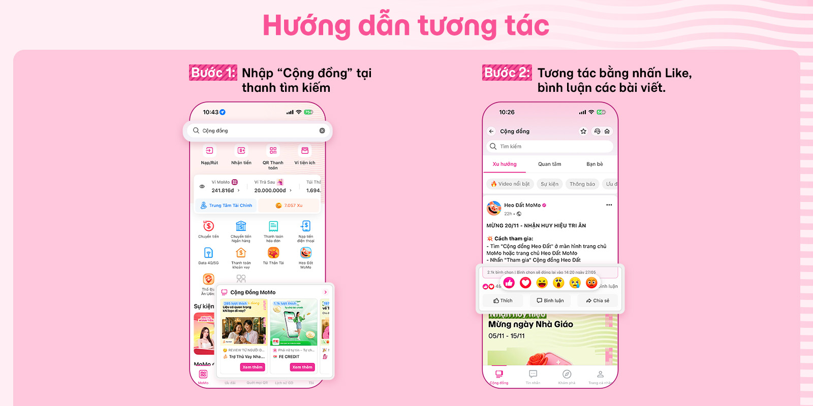 Hướng dẫn tương tác trên các trang cộng đồng của Ứng dụng MoMo